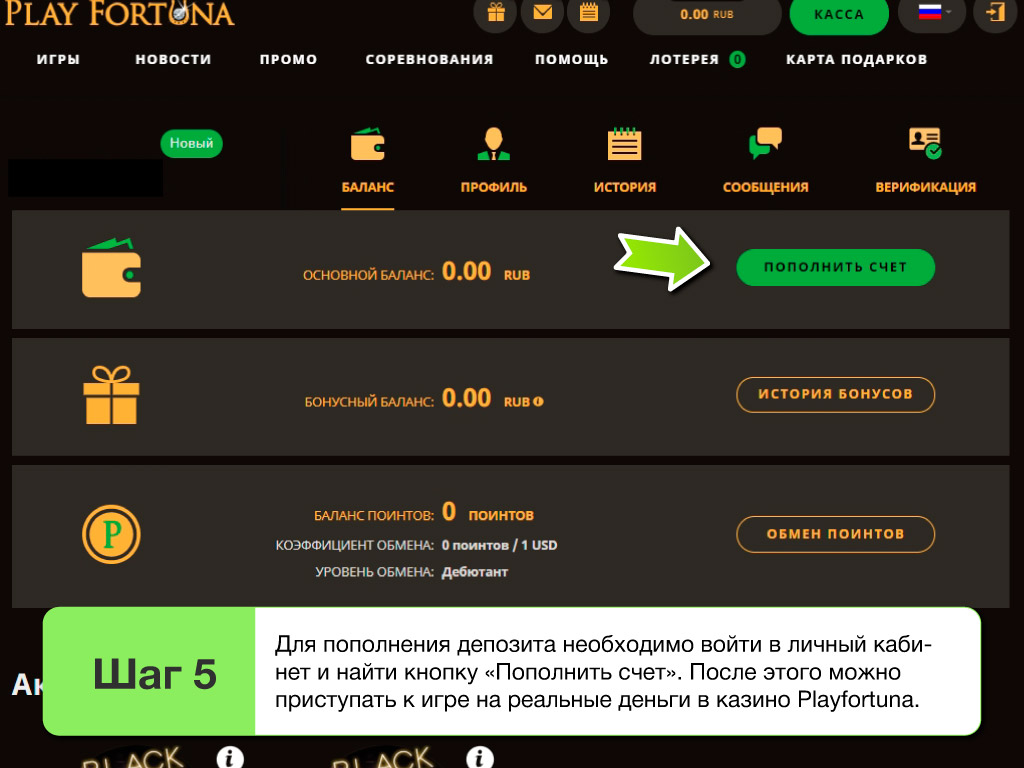 Минимальный депозит в Play Fortuna составляет 350 рублей. Сделать его можно следующими способами: