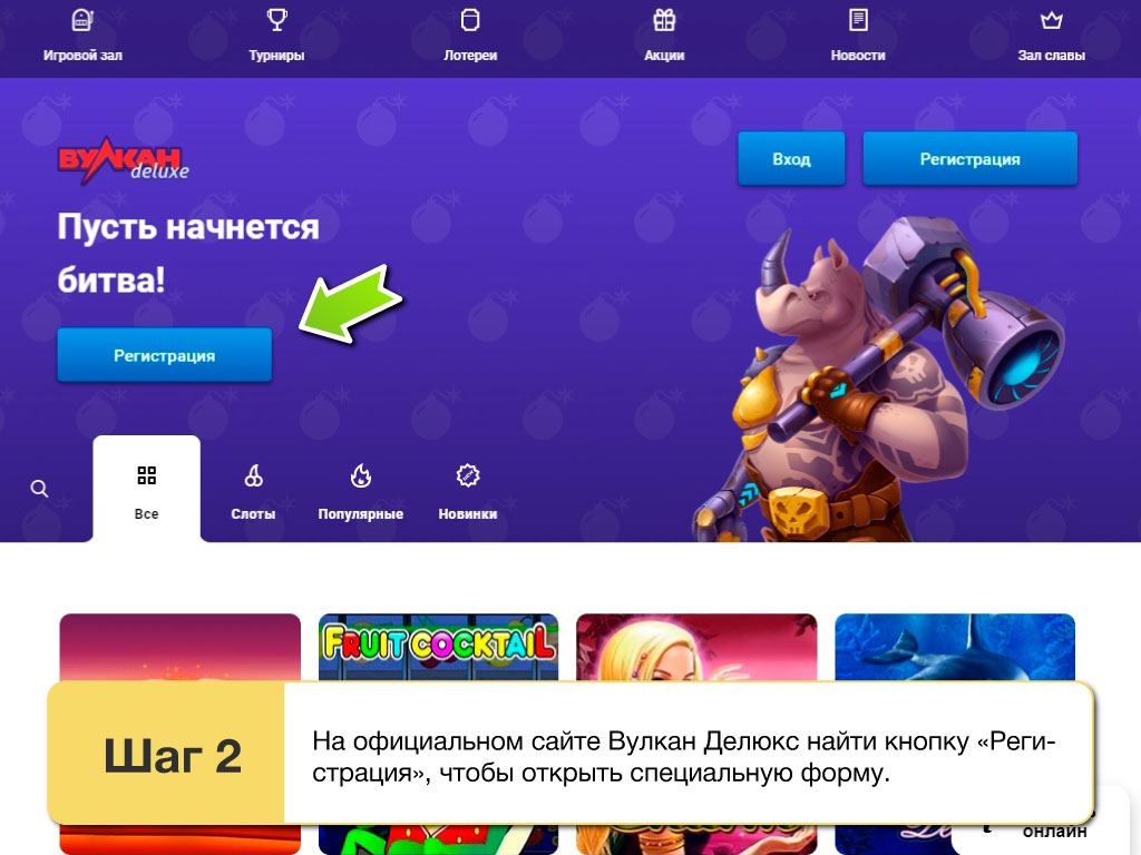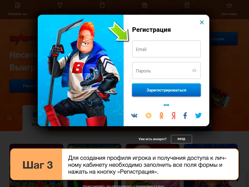 📝Прохождение регистрация на официальном сайте Vulcandeluxe club